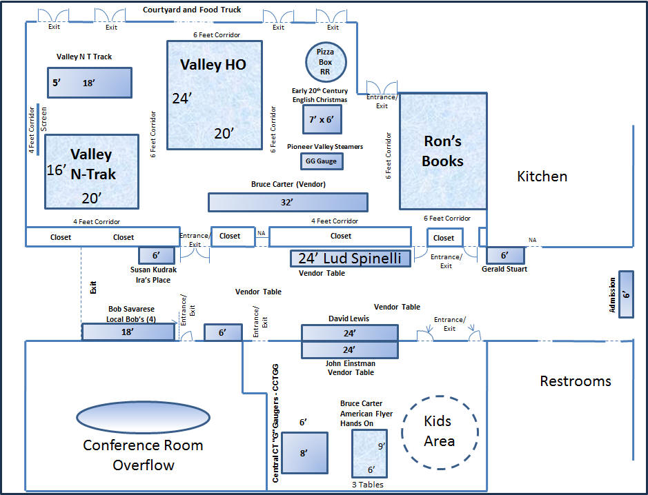 at the Show: - Win a Lego Train Layout - GG Gauge A 3D Printed Railroad - G Gauge Central CT "G" Gaugers - CCTGG - HO Gauge The Valley HO Club - T-Track Valley N-Gauge Club - 00 Gauge Lion Bill Brett Lots of Vendors Selling Model Railroad equipment for the Casual and Serious Hobbyist Food Trucks - By Full Bloom Catering Many Door Prizes - Win a Lego Railroad |
